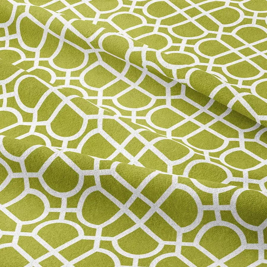 La colección de telas Reja grande de Tessa Fdez-Durán desarrolla un patrón geométrico súper actual combinando colores brillantes contrastándolo con blanco.