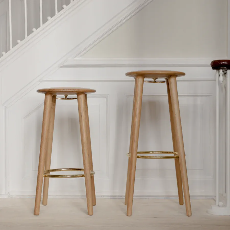 El taburete de mostrador Socialite combina artesanía meticulosa y diseño sofisticado. Fabricado en roble macizo, destaca por su durabilidad y belleza natural, aportando calidez a cualquier ambiente. Su asiento curvado está diseñado para brindar el máximo confort, mientras que el reposapiés de latón dorado añade estabilidad. Además, incorpora un práctico gancho de latón debajo del asiento, ideal para colgar una chaqueta o bolso, fusionando funcionalidad y estilo. Con una altura de asiento de 67,5 cm, ofrece una posición ergonómica perfecta para barras y encimeras altas. Perfecto tanto para entornos doméstico como para uno profesional, este taburete se adapta a diferentes espacios, ofreciendo una experiencia de asiento cómoda y con una imagen limpia. Disponible en dos alturas.