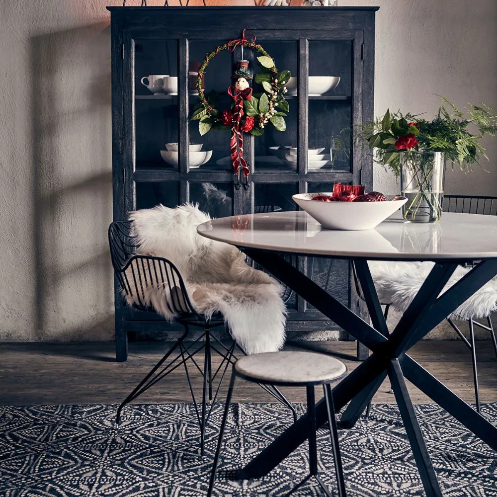El taburete/mesa auxiliar Marelo de la marca Affari of Sweden está fabricado con una superficie de mármol blanco que aporta estabilidad y una estructura de metal con acabado envejecido que le aporta carácter. Gracias a su diseño, es fácilmente apilable y permite un almacenamiento sencillo, siendo ideal tanto como asiento adicional como mesa auxiliar.