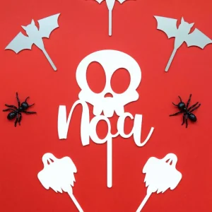 ¡Los Toppers personalizados más ideales para tu fiesta de Halloween! Puedes seleccionar el nombre que quieras y tu color preferido. También puedes incluir un mensaje personalizado para enviarlo como regalo.