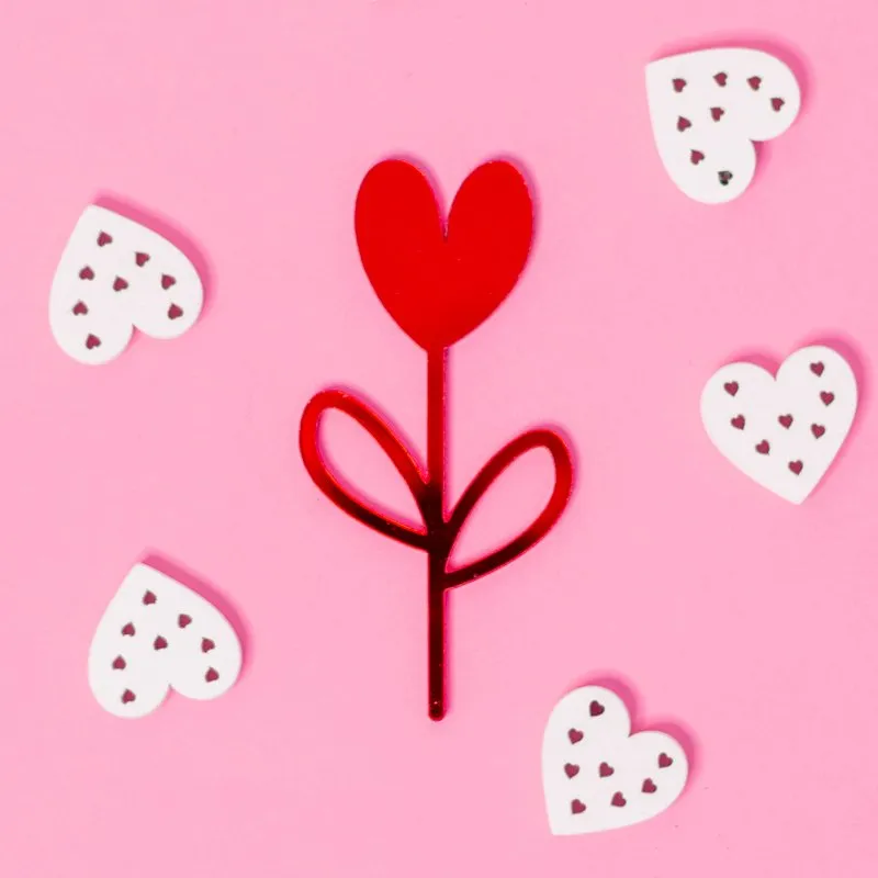 Topper con un precioso y amoroso diseño de un corazón con forma de tulipán, para hacer aún más romántico el día de San Valentín. Puedes seleccionar tu color preferido y tres medidas diferentes (mini, medio, maxi). También puedes incluir un mensaje personalizado en una tarjeta para enviarlo como regalo, indicándolo en los comentarios del pedido, al final del proceso de compra.