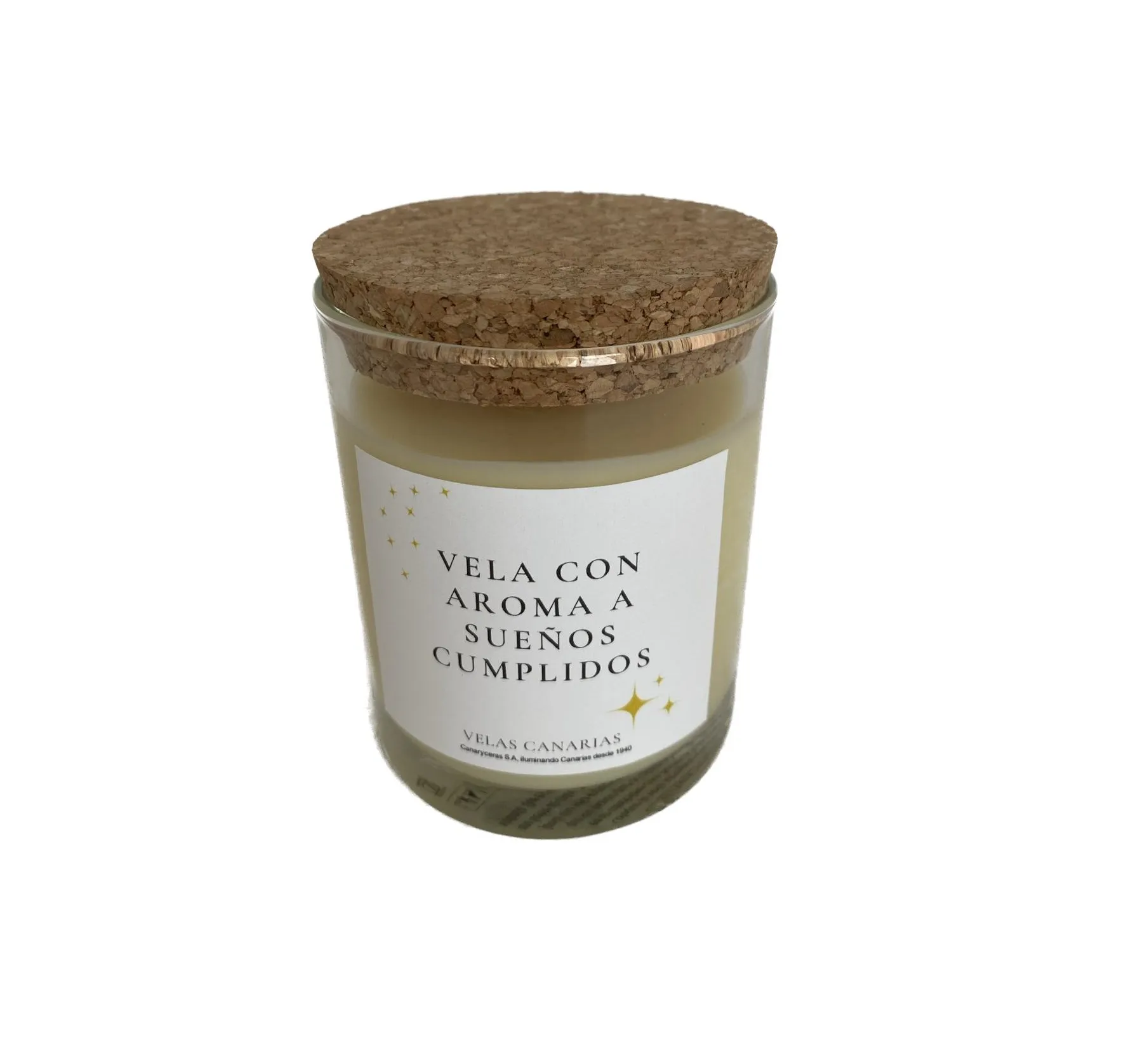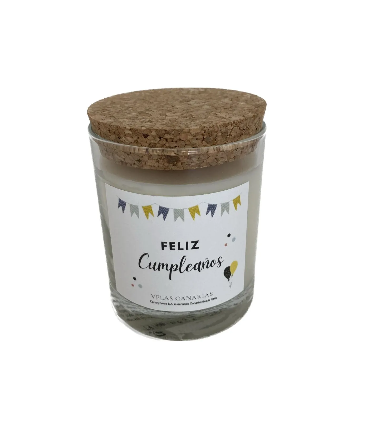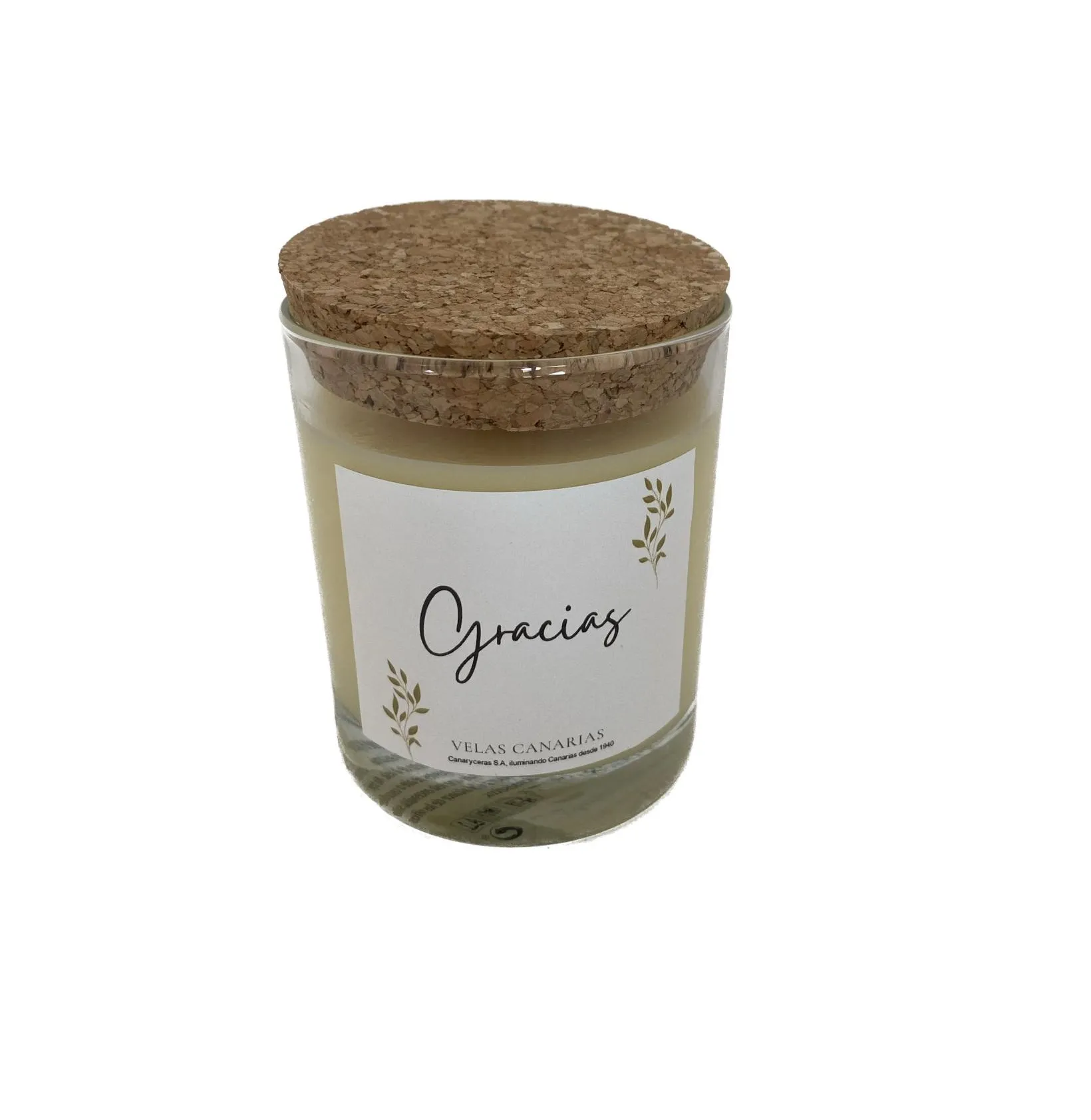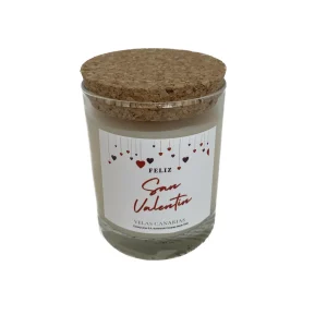 Vela en vaso vertida a mano en Tenerife con mensaje a elegir. Duración aproximada de 35h