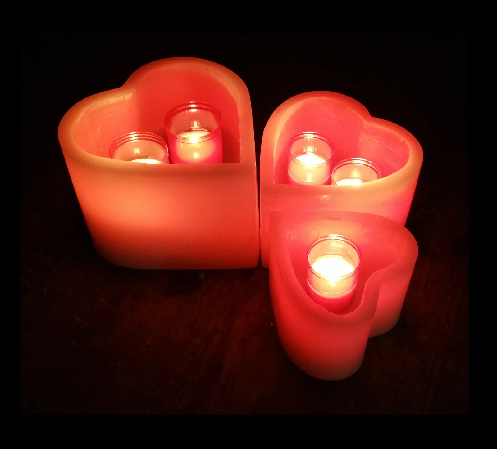 Se trata de una vela fanal (hueca) en forma de corazón, que en su interior incluye un repuesto de cera intercambiable que ilumina la misma.
