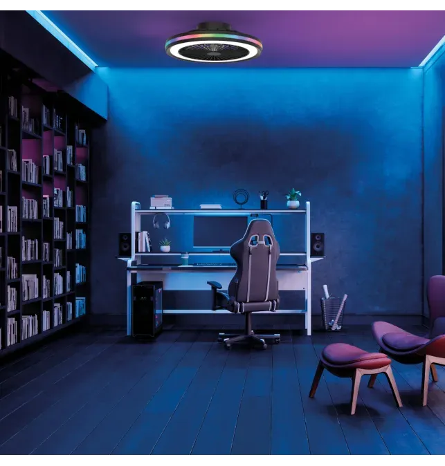 El Ventilador de techo Gamer es la opción perfecta para aquellos que buscan combinar estilo y tecnología en su hogar. Disponible en elegantes colores blanco y negro, este ventilador de techo destaca por su diseño gamer innovador, ideal para habitaciones juveniles, oficinas o salas de entretenimiento.