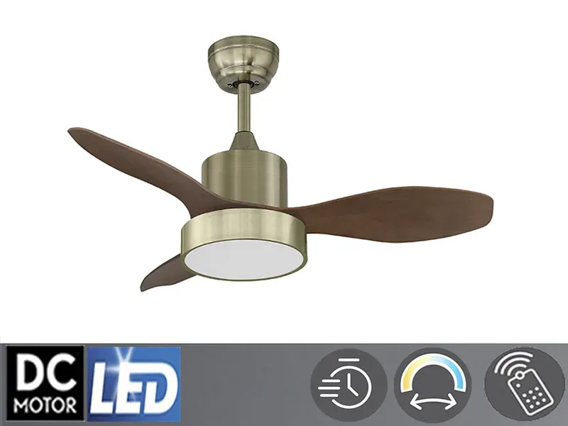 El Ventilador de Techo RIGA XS está disponible en distintos acabados: cuero, níquel, blanco con madera o blanco, es una solución elegante y funcional para la ventilación e iluminación de espacios interiores de entre 6 y 15 m². Este ventilador cuenta con un motor DC de alta eficiencia que ofrece seis velocidades, garantizando un funcionamiento silencioso y un consumo energético reducido, con un máximo de 35W en la velocidad más alta. Incorpora una luz LED de 24W con temperatura de color regulable entre 3000K, 4000K y 6000K, proporcionando una iluminación adaptable a diferentes ambientes, con un flujo luminoso de 2.220 lúmenes. Sus tres palas en color nogal están diseñadas para optimizar el flujo de aire, alcanzando hasta 110 m³/hora. El ventilador incluye un mando a distancia que permite controlar tanto la velocidad como la iluminación, facilitando su uso. Además, dispone de función inversa para su uso en verano e invierno, mejorando la eficiencia energética del hogar. Con un diámetro de 965 mm y una altura ajustable de 325 mm o 450 mm gracias a las dos barras de fijación incluidas, se adapta a diferentes alturas de techo. Su peso neto es de 4,84 kg. Este ventilador es ideal para dormitorios, salas de estar o cualquier estancia que requiera una ventilación eficiente y una iluminación versátil.
