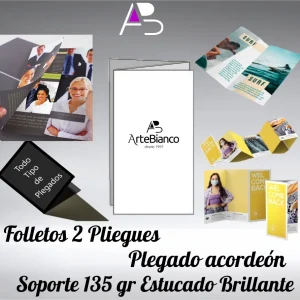 Folletos con 2 pliegues plegado Acordeón en papel estucado brillante de 135 gr cuatricomía 1 cara