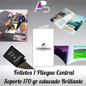 Folletos con plegado central en papel estucado brillante de 170 gr cuatricomía 1 cara