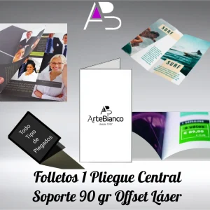 Folletos con plegado central en papel offset láser 90 gr cuatricomía 1 cara
